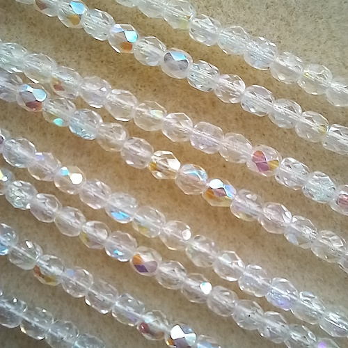 100 4mm Czech glass faceted crystals, crystal clear ab