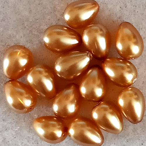 15 glass drop beads, 11mm x 8mm, pearl gold