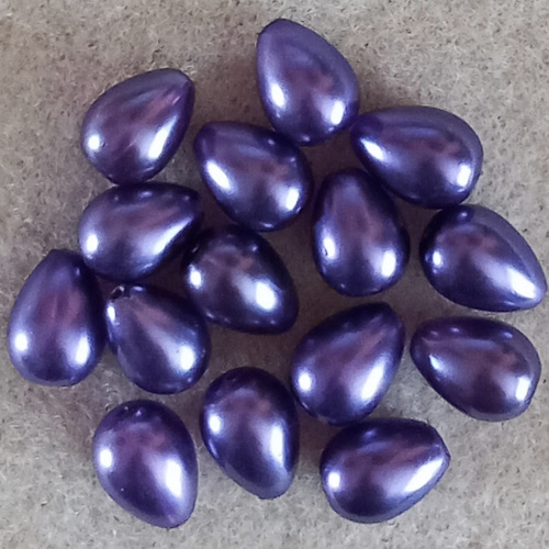 15 glass drop beads, 11mm x 8mm, purple pearl