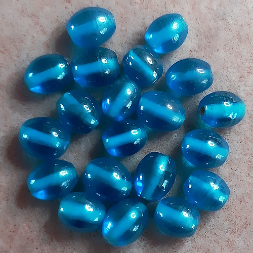 20, lustered aqua blue, Indian glass beads, oval 9mm x 11mm