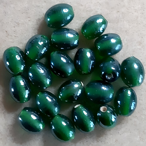 20, lustered emerald green, Indian glass beads, oval 8mm x 10mm