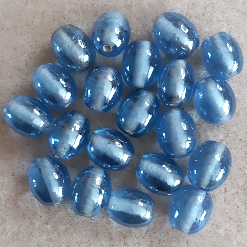 20, lustered light blue, Indian glass beads, oval 8mm x 10mm