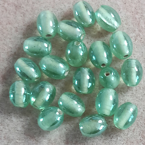 20, lustered mint green, Indian glass beads, oval 8mm x 10mm