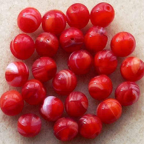 Patterned beads in shades of orange.