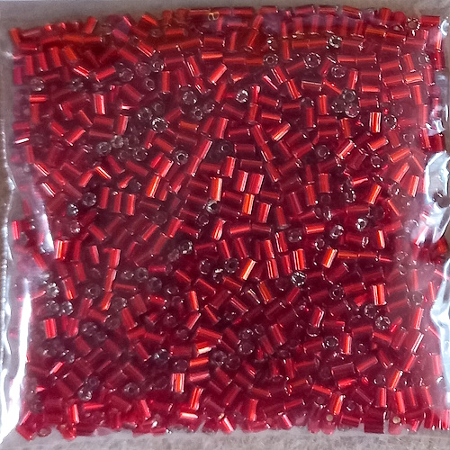 Bugle beads are small tubular glass beads and are available in many sizes, colours and finshes.