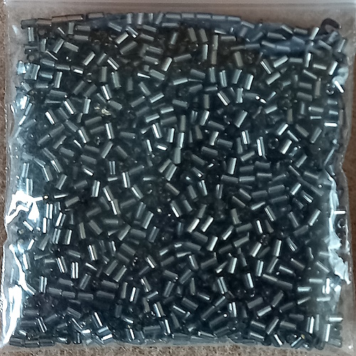 Bugle beads are small tubular glass beads and are available in many sizes, colours and finshes.