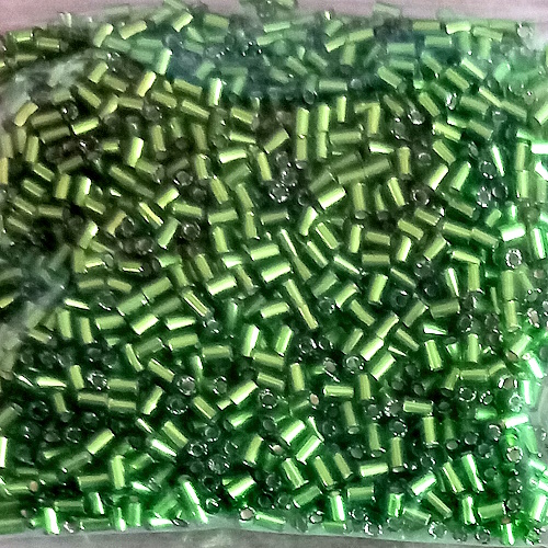 20g, 2mm bugle beads, silverlined lime green