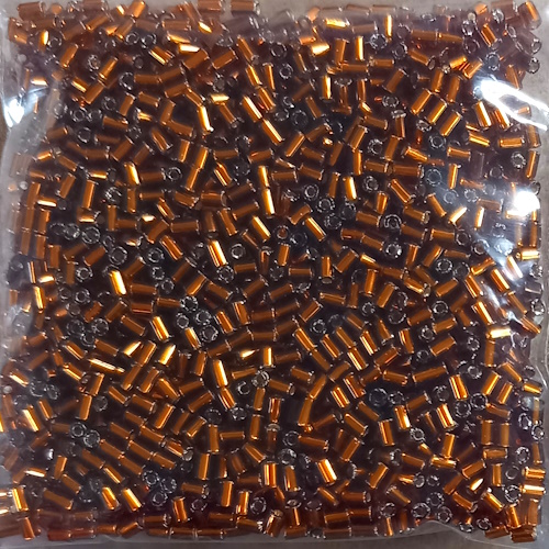 Bugle beads are small tubular glass beads and are available in many sizes, colours and finshes.