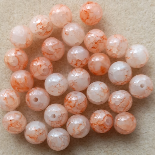 Pack of 30 two tone glass crackle beads.