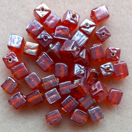 40 lustred glass tube beads, orange, 7mm x 6mm.