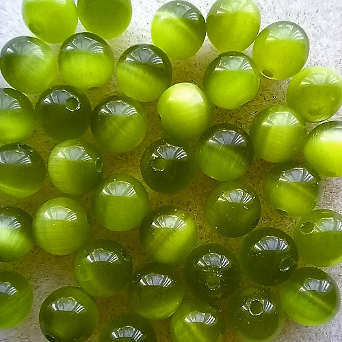 Cats eye beads catch and reflect light in a band across the bead resembling a cats eye.