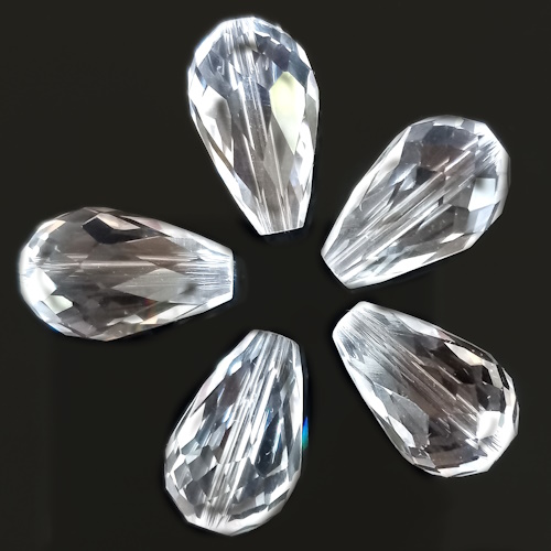 5 faceted crystal drop beads, crystal clear, 23mm x 12mm