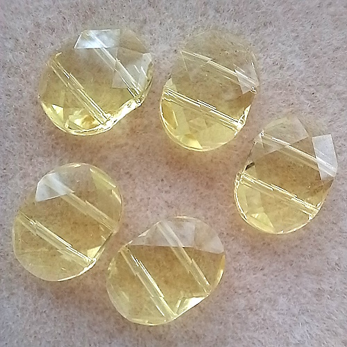 5 flat oval, 2 hole faceted crystal beads, 15mm x 11mm, yellow