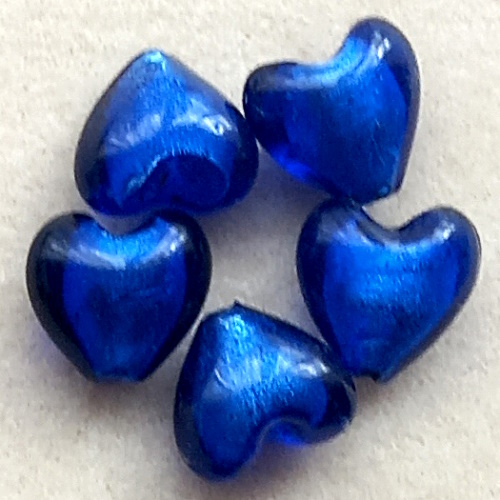 Pack of 5 heart shaped Indian glass beads.