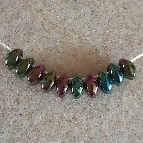 Seed beads are small glass beads and are available in many sizes, colours and finshes.