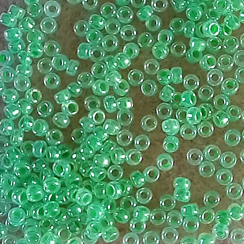 Seed beads are small glass beads and are available in many sizes, colours and finshes.
