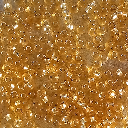 Seed beads are small glass beads and are available in many sizes, colours and finshes.
